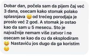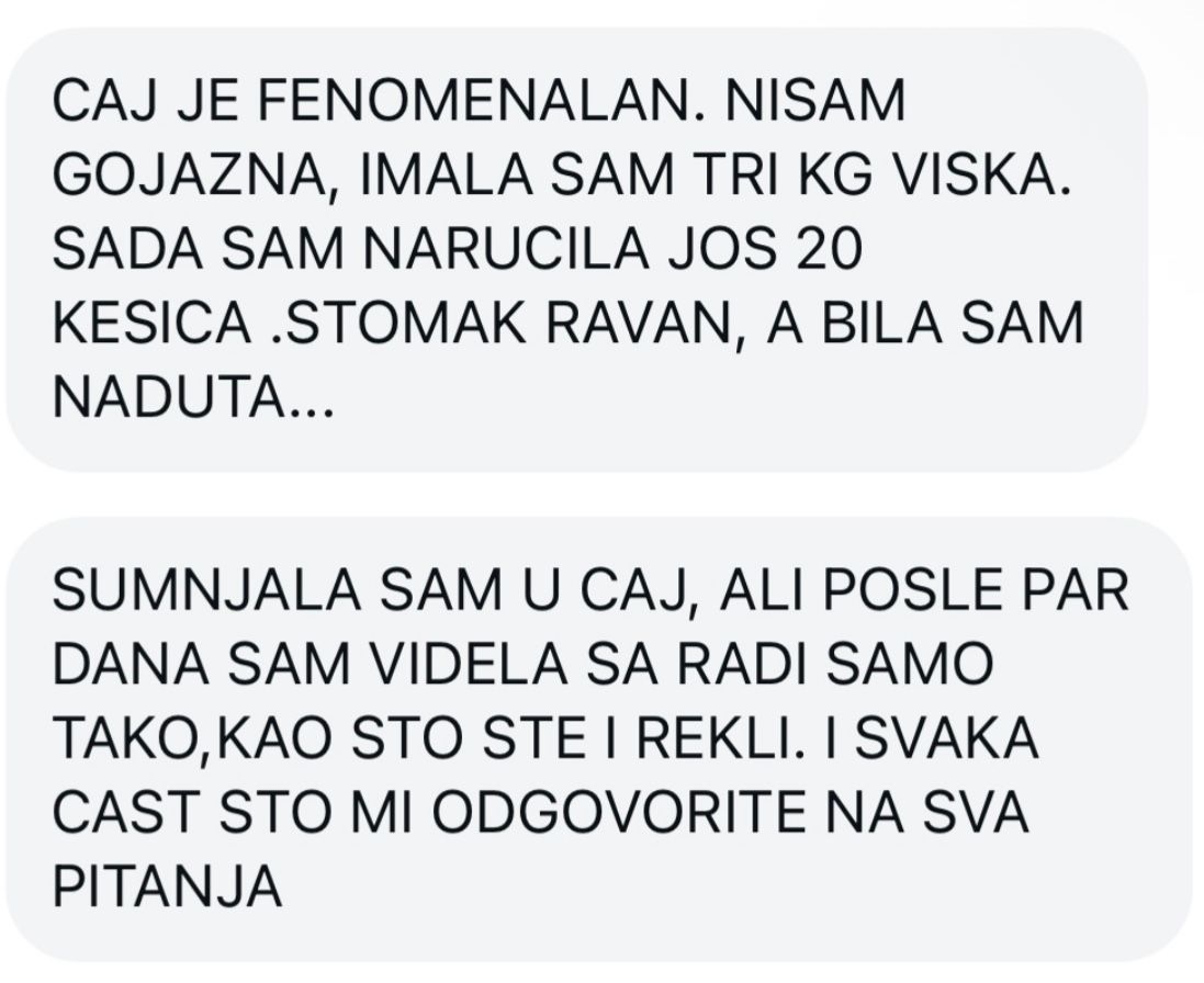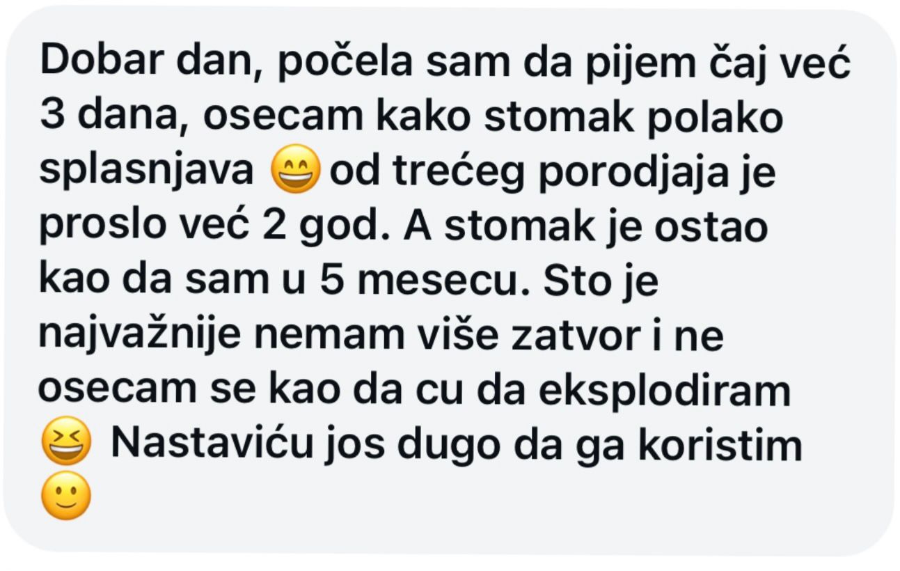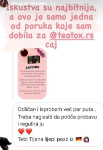 Sa TeaTox čajem, mnogi korisnici već u prvim danima primećuju manje nadutosti, osećaj lakoće i bolju probavu. Rezultat nije samo kako izgledate , već i kako se osećate svakog dana.